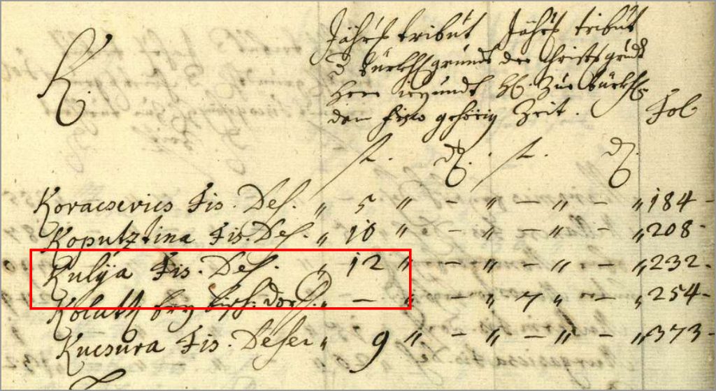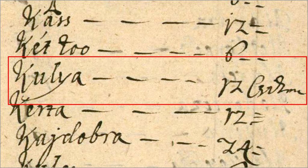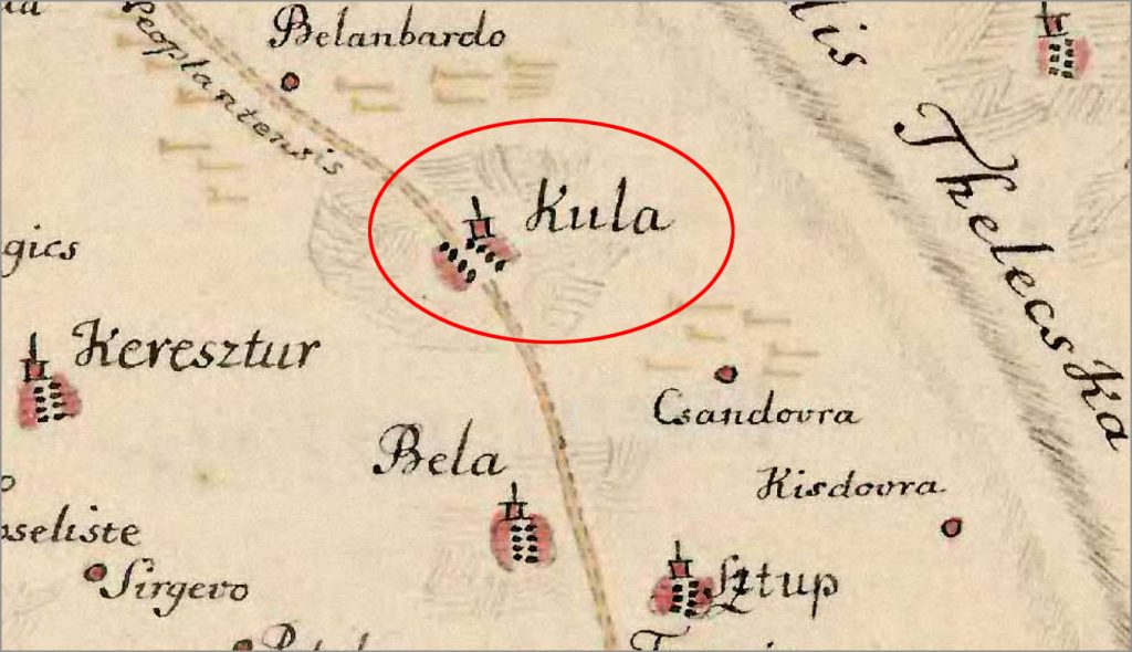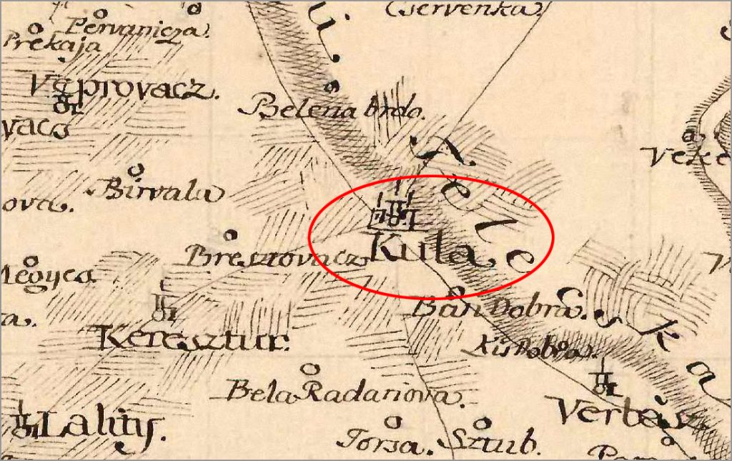 Prvi zapis Kule na zemljopisnoj mapi Bačke županije iz 1748. godine