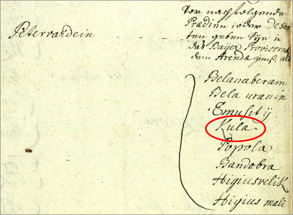 Kula nabrojana među pustarama u posedu graničara Petrovaradinskog šanca 1721. godine