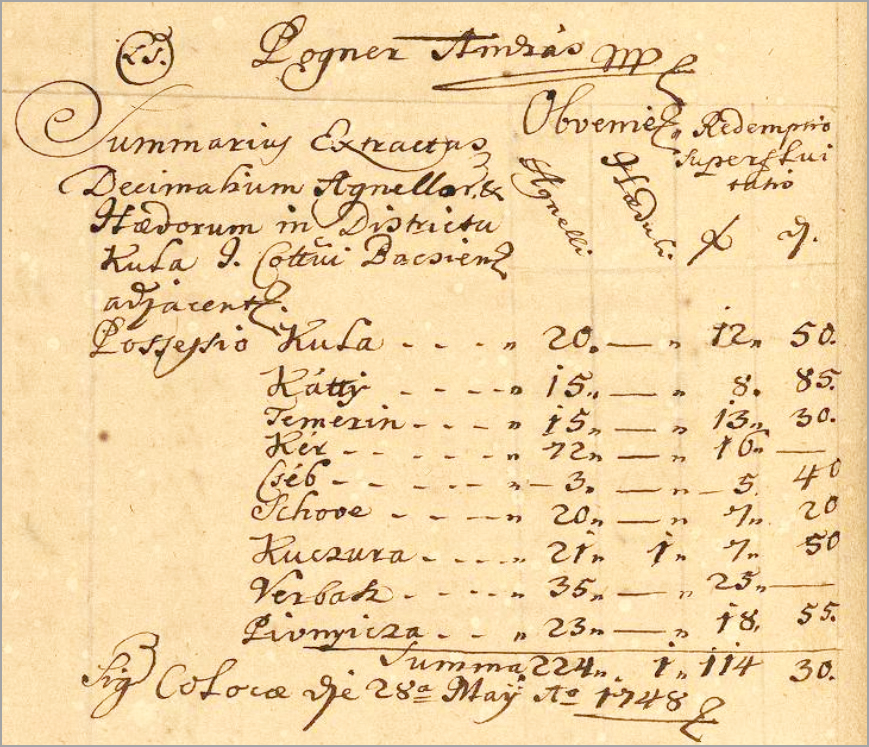 Kula kao središte komorskog provizoriujuma 1748. godine, sa spiskom pripadajućih naselja