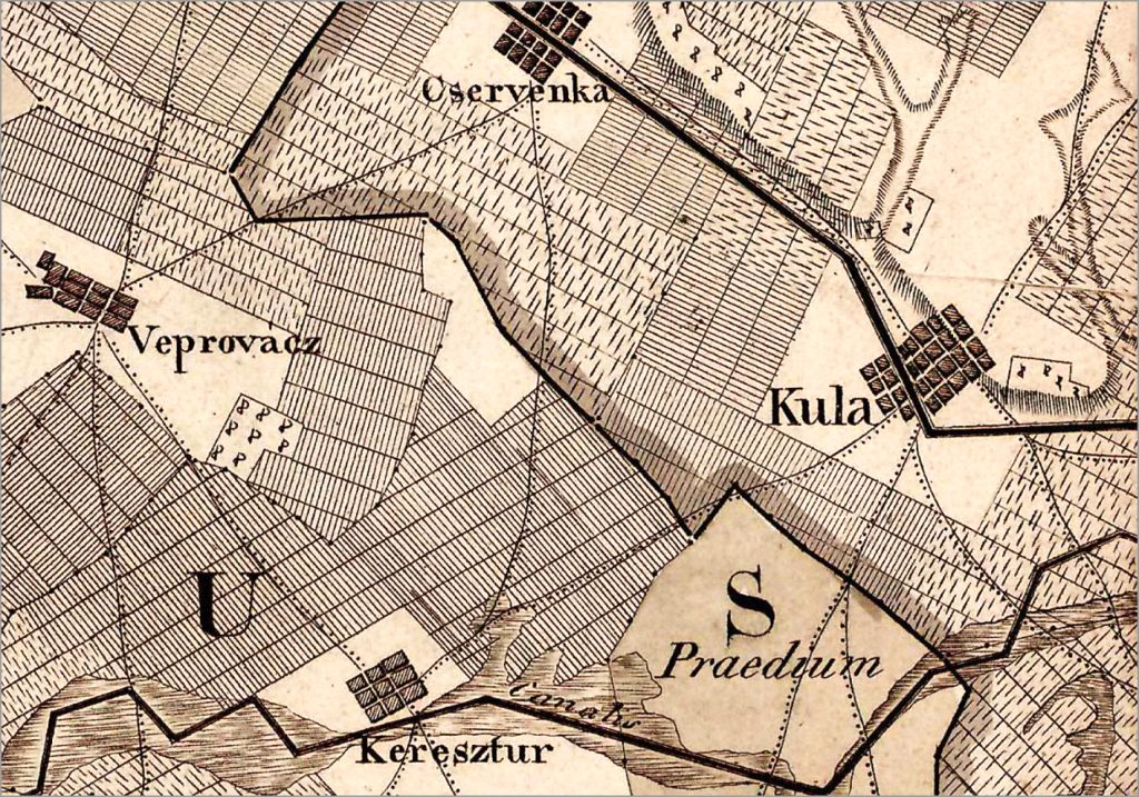 Kula sa okruženjem na mapi Bačke iz 1825. godine