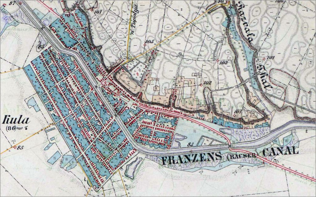 Kula na detaljnoj mapi iz 1880-ih